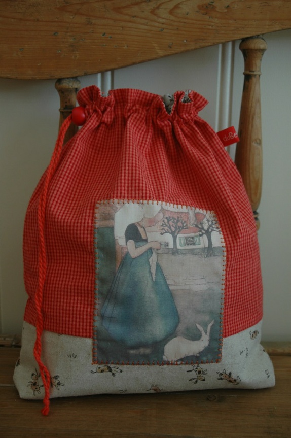 Middels stor pose til mindre strikkeprosjekter som sokker, luer, barneplagg etc. Rommer også litt ekstrautstyr, noen garnnøster og oppskriftshefte sammen med strikketøyet.