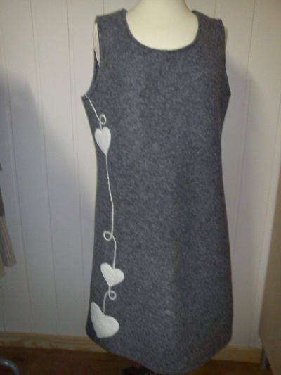 En av flere ullkjoler. sydd i ullfilt med dekor.Lys gråStørrelse 44 , for mål send meg en mld.