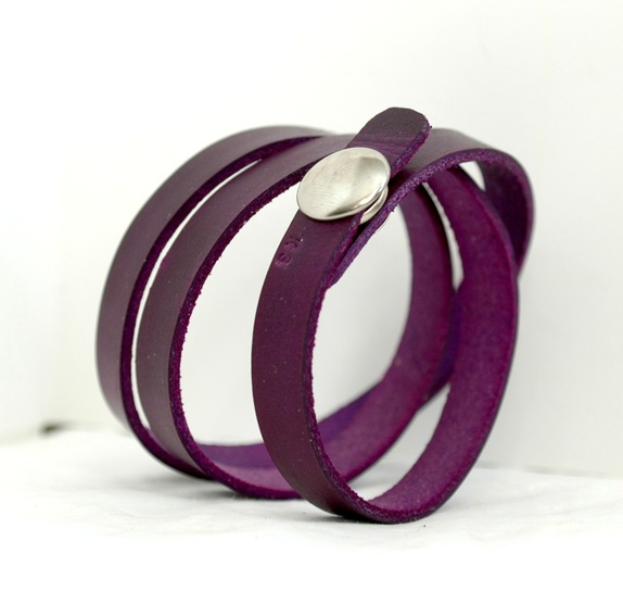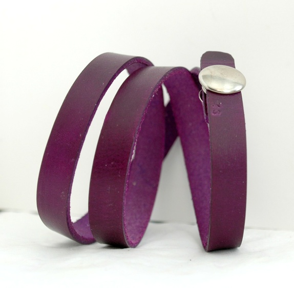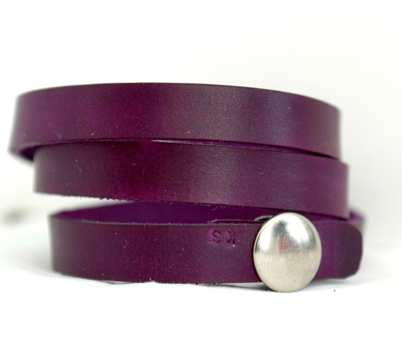 Vikle læderarmbånd - 1 cm bredt Lilla - "sølv" knap