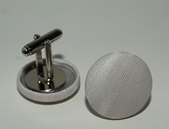 Mansjettknapper i resirkulert tekstil. Har levd et tidligere liv som bluse. 2,3 cm i diameter. Nikkelfri.