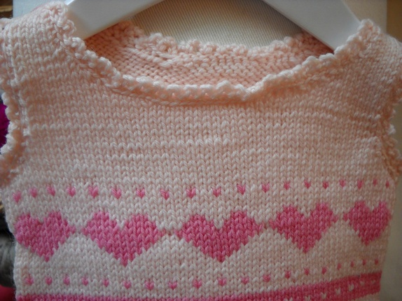 Rosa babybody i Dale babyull. Hjerteknapper på skuldre, trykknapper i skrittet. Str: Nyfødt. Lengde: 32cm, bredde: 22cm. Vaskes på 30 grader ullprogram.