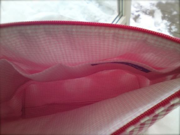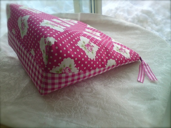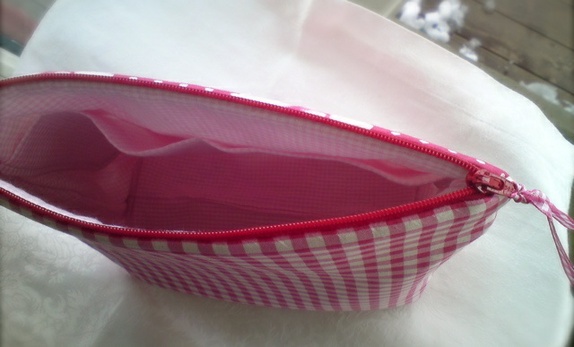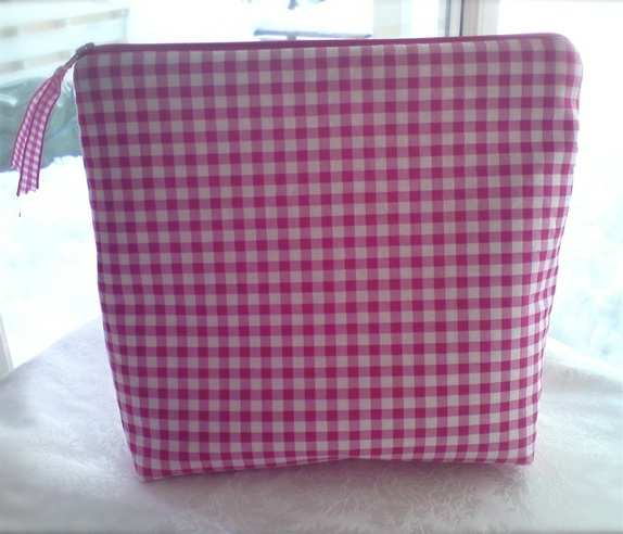 Foret med et trivelig stoff i bomull - lys rosa og hvit i små ruter.