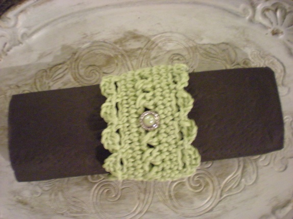 Serviettringer i vårgrønt og glassbrikker i lilla som matcher finnes også i min butikk.. Se siste 2 bilder.