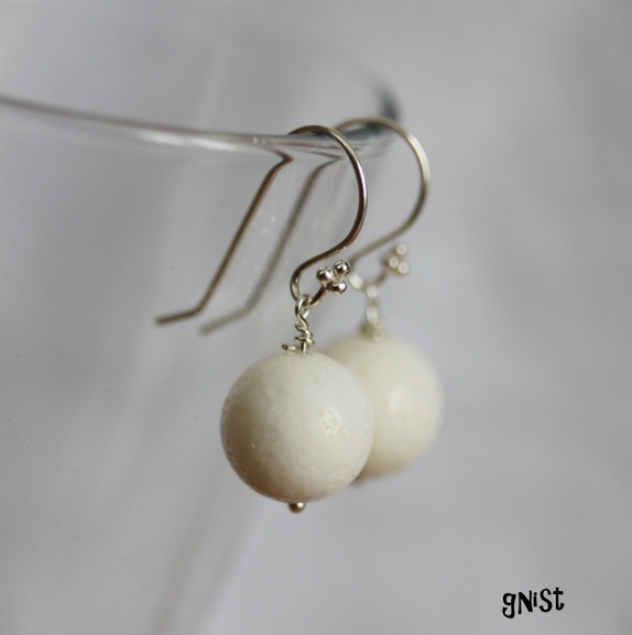 Disse øredobbene passer kjempefint til smykker og armbånd jeg har laget av de fine hvite koral perlene.