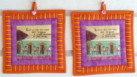 Motivet er decopage på lin. Kantar og bakstykke i bomull.Vattert og qullta i saumane.Storleik: 22 x 22 cm Prisen er pr. par.