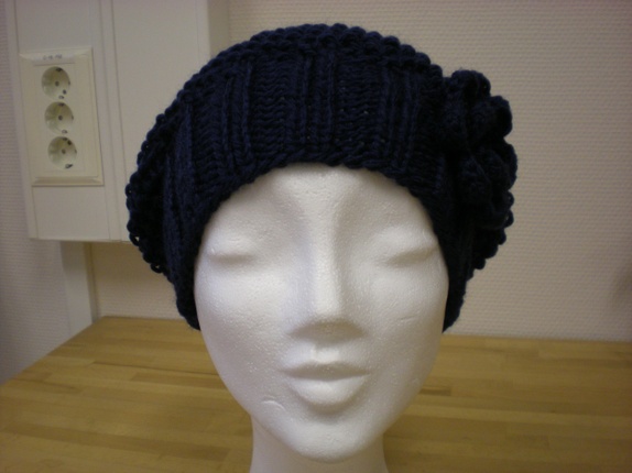 Strikket i Gullgarn, 50% ull og 50% akryl. Maskinvask 40 grader. God og myk. Blomst har påsydd brosjenål bak.