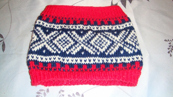 Pannebåndet er håndstrikket i 100% ren ny ull. Størrelse : Dame ( Bredde 18,5 cm og omkretsen er 48 cm ) Kan vaskes på ullprogram i maskinen på 40 grader uten skyllemiddel.