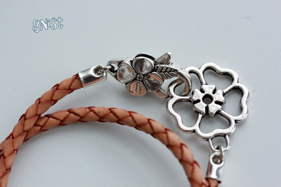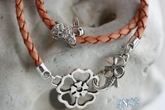 Flettet skinnarmbånd av ekte skinn (4mm) i en nydelig cognac-farge. Armbåndet skal to ganger rundt armen og har en stilig regulerbar lås som er lett å lukke.