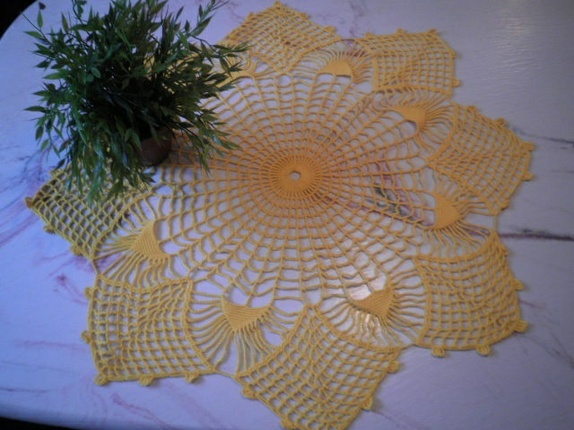 Lekker duk i et åpent mønster.Størrelse: 70cm i diameter