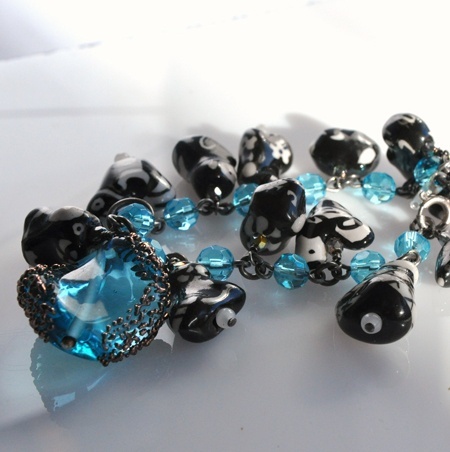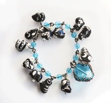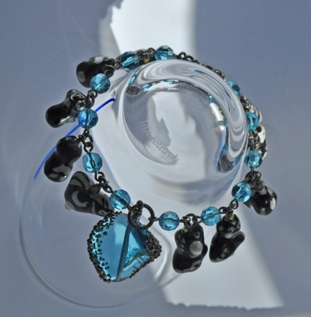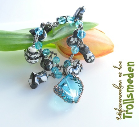 Et aldeles morsomt og herlig armbånd av Lykkeperler, og en stor flott tsjekkisk lampworkperle. Jeg har selv vært på kurs der den perlen ble alget.
