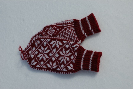 Deilig varme votter med tradisjonelt motiv.Strikket i 100% ull i fargene dyprød og hvit.