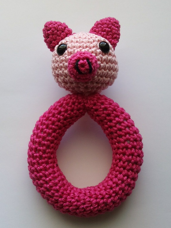 Inne i hodet på grisen er det en beholder, den inneholder små perler. Beholderen er tettet med tape.
