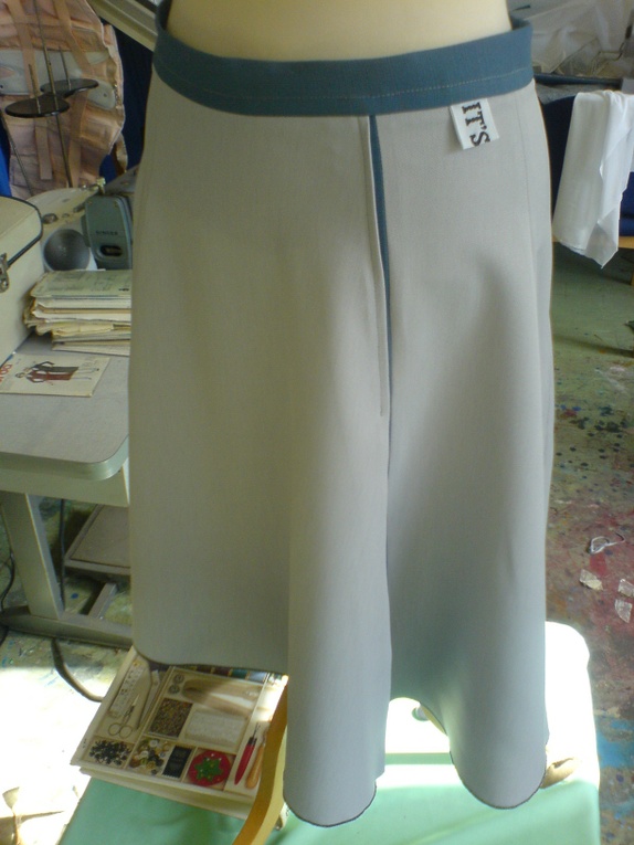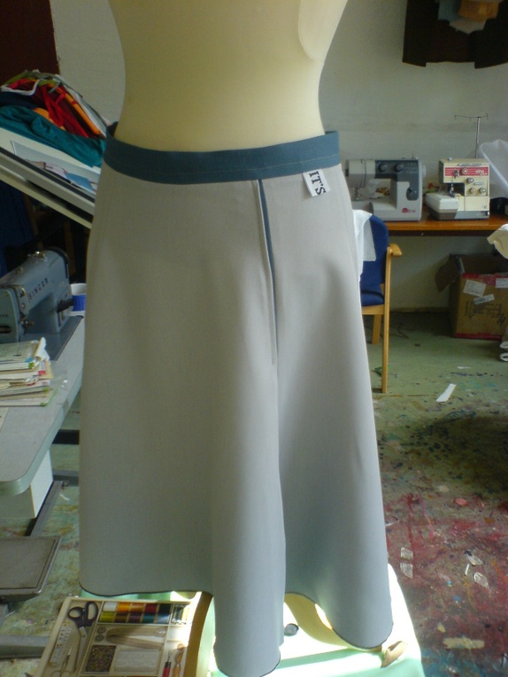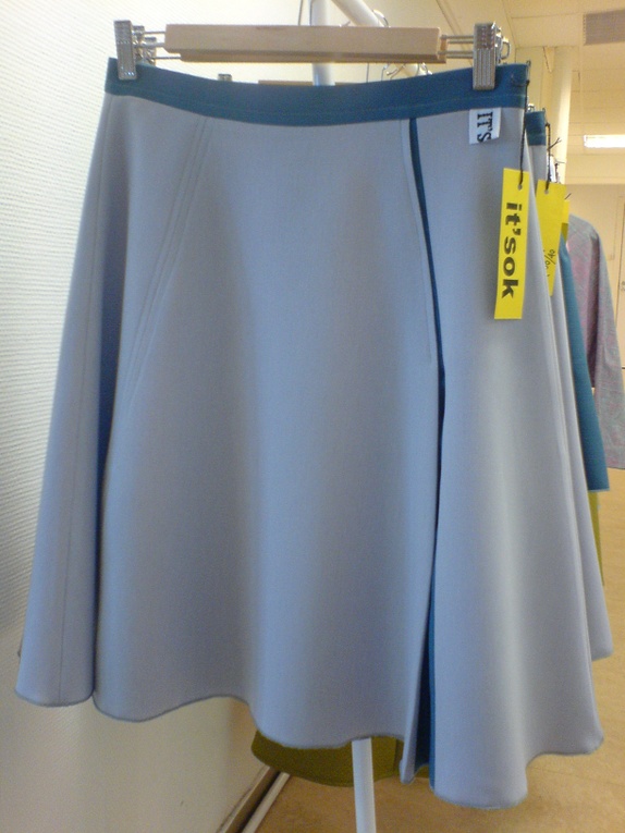 Et perfekt skjørt for den som trenger å være formell, men likevel vil være individuell. Grått med blå/grå innlegg ( folde) og midjebånd. Polyester.
