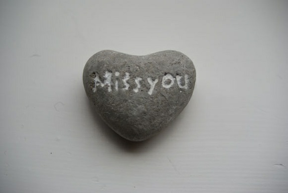 Stein formet som et hjerte med magnet på baksiden.Gravert inn Miss you.