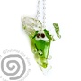 Denne alvetåren er helt grønn, han undrer og tenker veldig mye, og henger i sølv kjede. Alvetårefolket i glass er ca 2,5 cm høye.