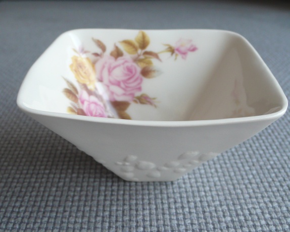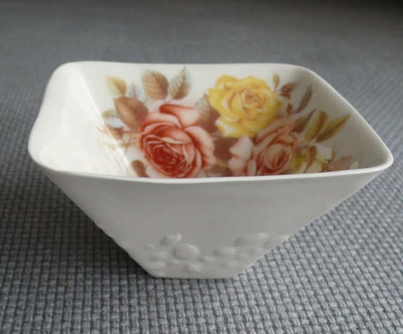 Skålen er 11 cm i diameter, 3 cm i bunn og 7 cm høy.