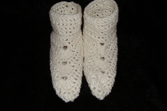 Romantiske tøfler i hvitt m/viftemønster foran.