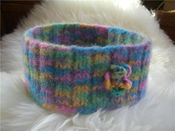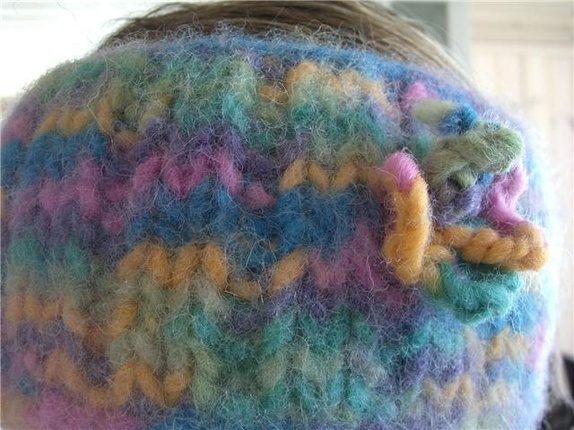 Tovet pannebånd strikket i Vikinggarn (flerfarget) - 100% myk deilig ull. Pannebåndet har fremdeles god "tøy".