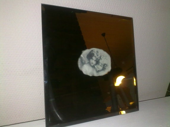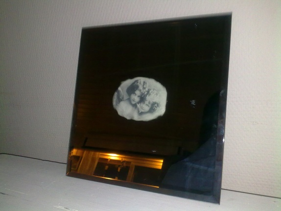 Flott speil uten ramme, med motiv av to søte engler 25x25 cm. Hvis et annet motiv ønskes er det bare å ta kontakt.