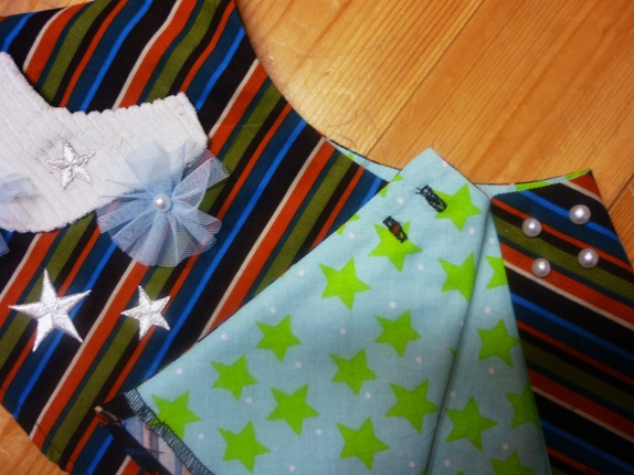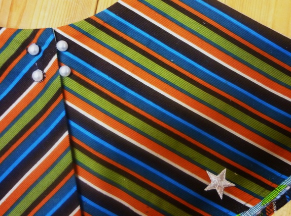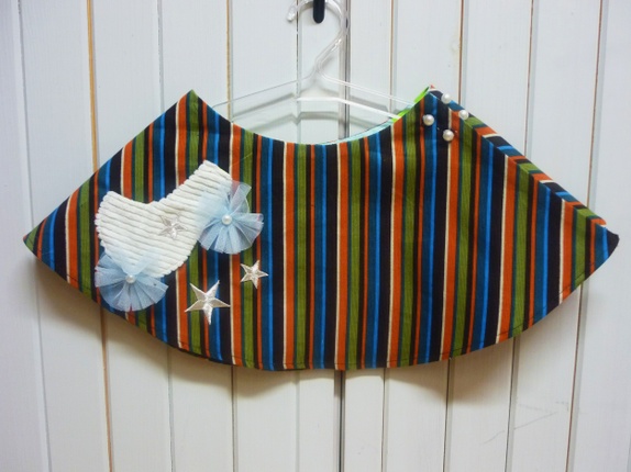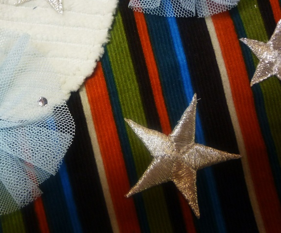 Regulerbart skjørt i babycord, fór i mønstret bomull.Lomme, og detaljer i tyll. 3 stjerner foran,1 stjerne bak.