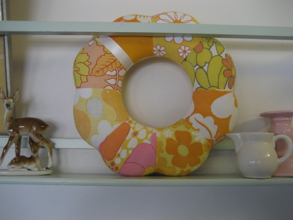 Jeg laget disse kransene første gang på 90-tallet sammen med moren min, da som julepynt, etter inspirasjon fra en hobbybok eller ukeblad jeg desverre ikke husker navnet på. Ideen om å sy kransen i retrostoffer fikk jeg sist jul da jeg igjen tok fram kransen fra den gang. Jeg synes det var en flott måte å bruke de fargerike retrostoffene på som jeg, og så mange andre har blitt så glade i.