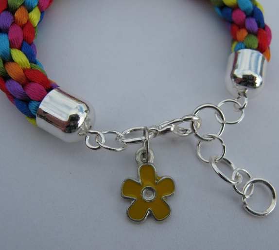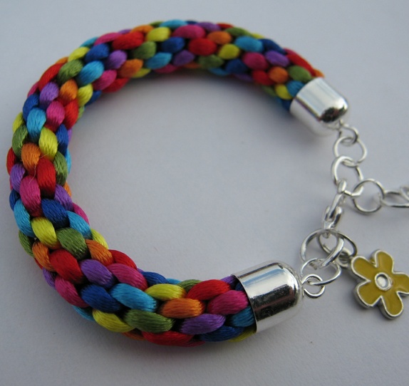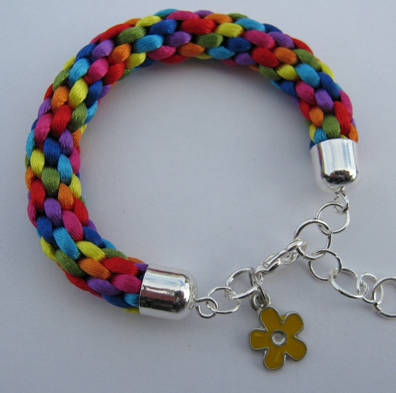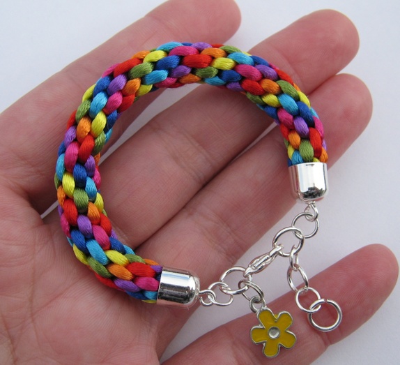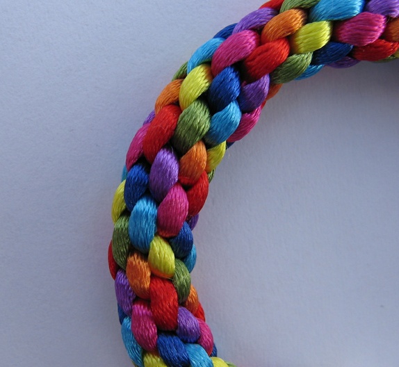 Armbånd i alle regnbuens farger (sateng) - Jr.- flettet for hånd
