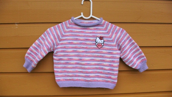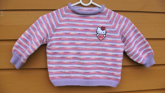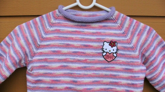 Genseren har raglandfelling og er pyntet med Hello Kitty tøymerke.