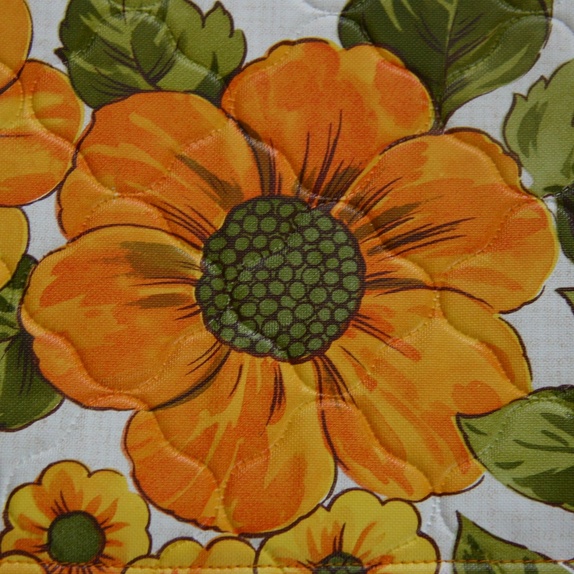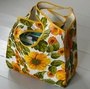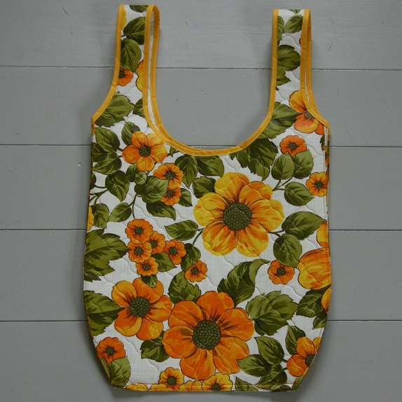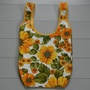 Denne finnes det bare en av: Den er sydd av et ødelagt hengeskap i plast som ble ansett som søppel på et loppemarked (!). Forsiden og baksiden er polstret, sidestykkene er tynn plast. Gule og oransje retroblomster på hele handlenettet. Nettet tar litt større plass enn mange av de andre på grunn av polstringen, kanskje fint som strandveske? Langs kantene er det gult skråbånd og bak på posen God som Grønn-merkelapp.