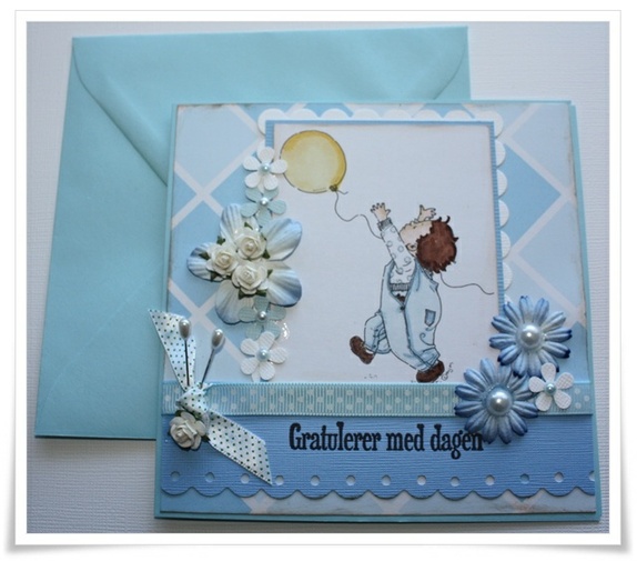 Kortet str er ca 13x13. Kommer i farget konvolutt som på bilde. Trykket er fra Mo Manning og farget med hånd av meg