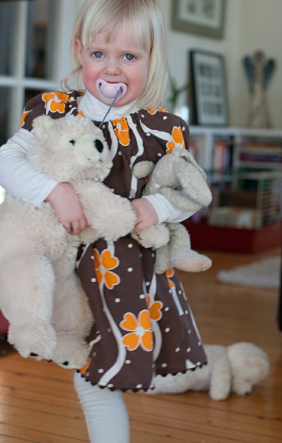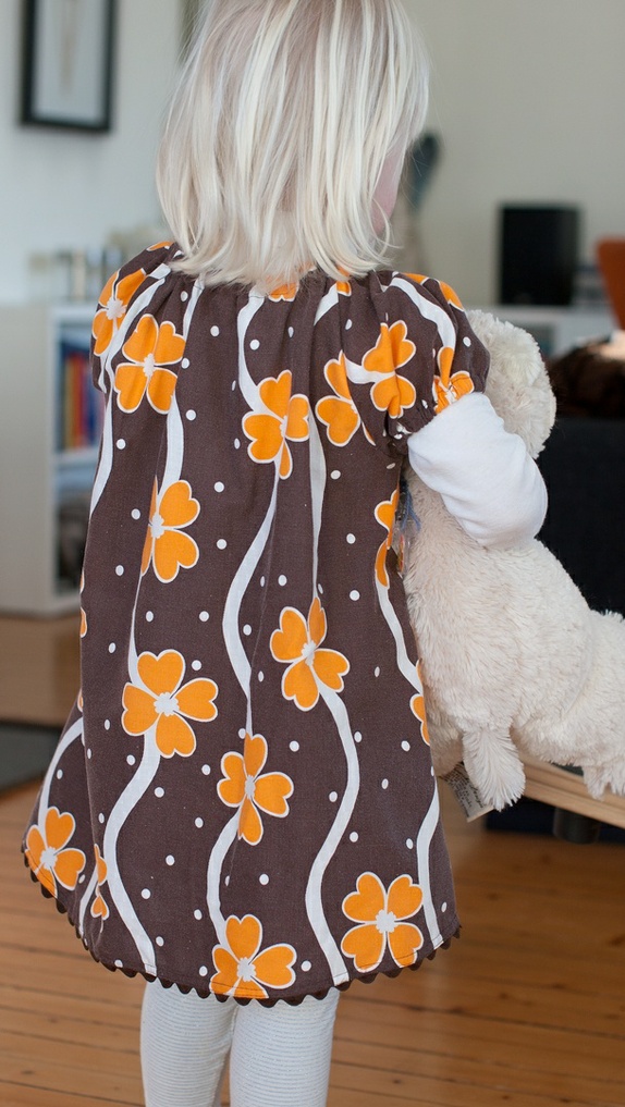 Kjole i str 4 år.Laget av gjenbrukstekstil.