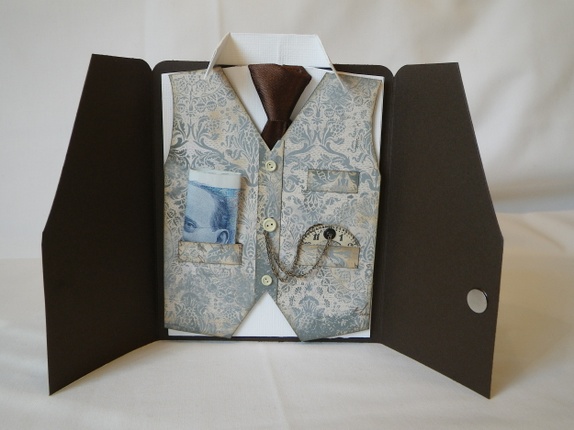 I den ene lommen på vesten er det et lommeur, i den andre lommen er det plass til penger.