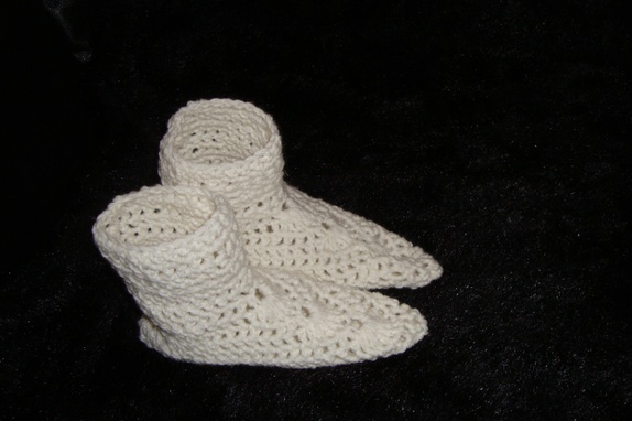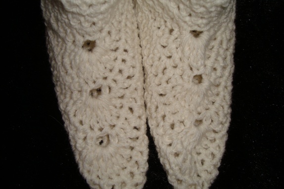 Romantiske tøfler i hvitt m/viftemønster foran.