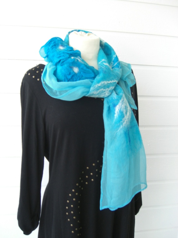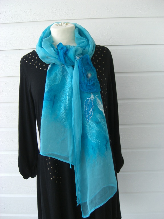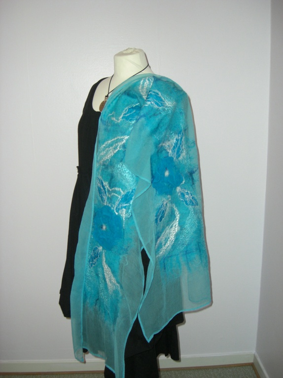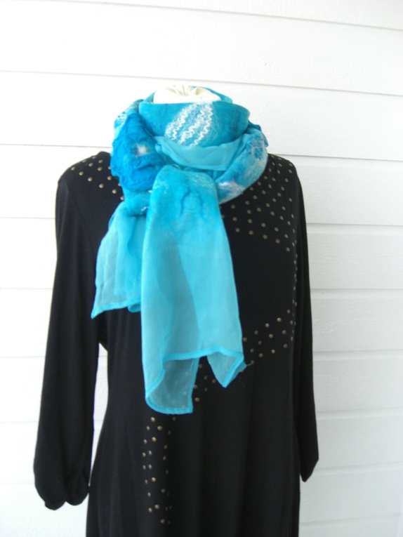 Nunofiltet skjerf100% silkechiffong,merinoull,silkefibre,pong.silke.Størrelse : 170 cm x 36 cm