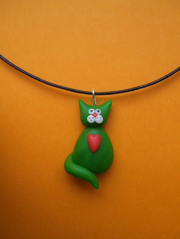 Håndlaget anheng av cernit.Høyde 3 cm.Regulerbar syntetisk skinnsnor.