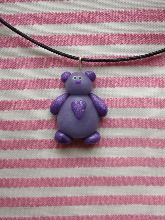 Håndlaget anheng av cernit.Høyde 2,5 cm.Regulerbar syntetisk skinnsnor.