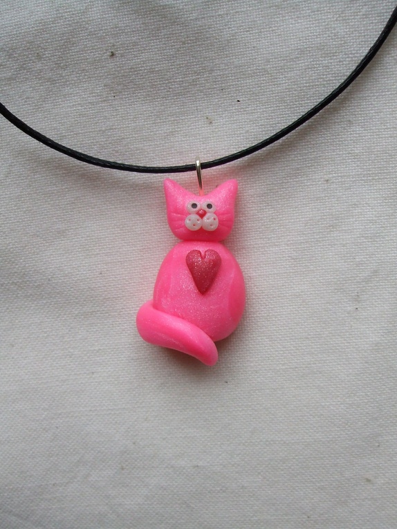 Håndlaget anheng av cernit.Høyde 2.8 cm.Regulerbar syntetisk skinnsnor.