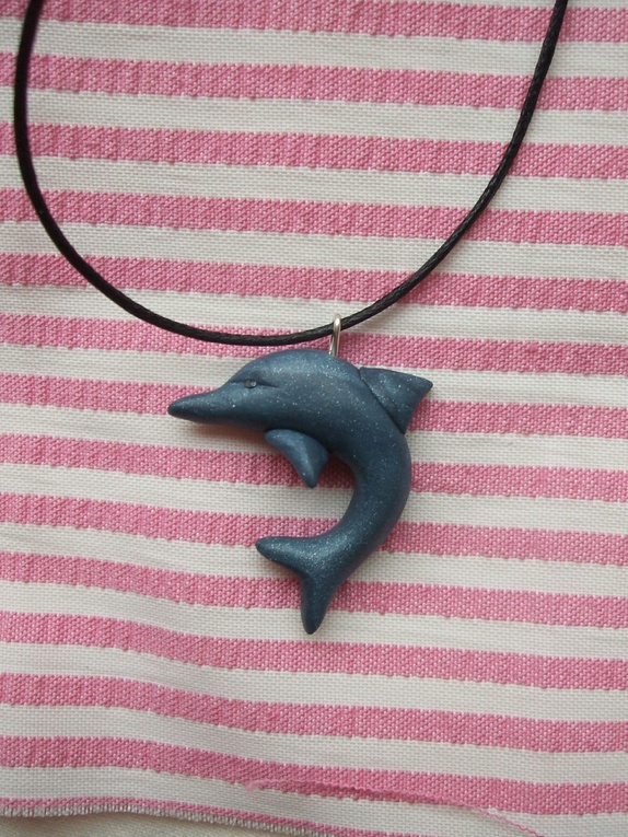 Håndlaget anheng av cernit.Høyde 3 cm.Regulerbar syntetisk skinnsnor.