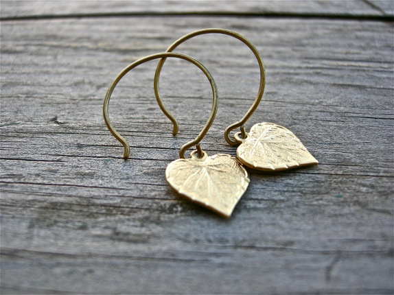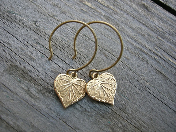 Vakre øredobber med gullfarget blad .ørekrok i oksydert kobber. Måler ca 3 cm lang.