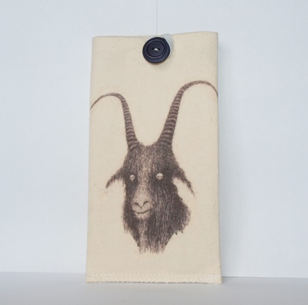 iphone etui med motiv Kan også brukes til vanlig mobiltlf.Sydd og foret med samme lerretstoff.Vliselin mellom stofflagene8x16 cm
