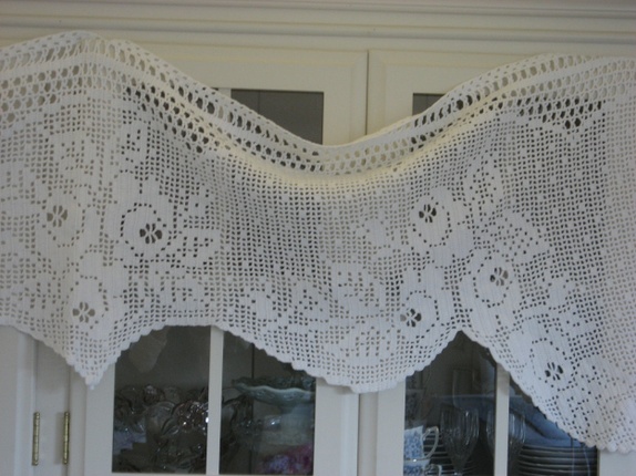 Nydelig gardinkappe heklet av bestemoren min. Romantisk rosemønster.