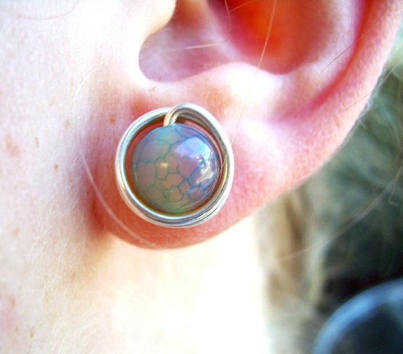 .925 sterling sølv wire er brukt rundt og i steinen og til krok. Det ser ut som om steinene svever, og du kan trille dem rundt når du har dem på! Perfekt for oss som kjeder oss ofte..