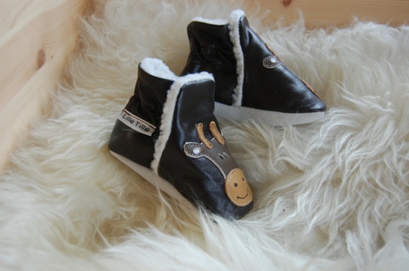 Myke skinntøfler med for til baby, strl. 6-12 mnd