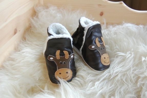Myke skinntøfler med for til baby, kr. 350,-. Finnes i ulike størrelser