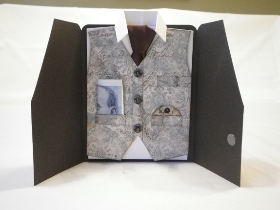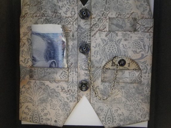 I den ene lommen på vesten er det et lommeur, i den andre lommen er det plass til penger.
