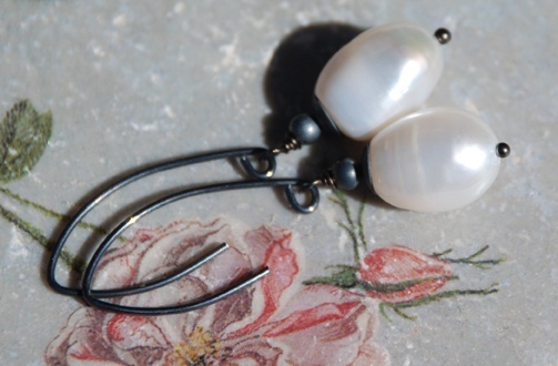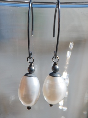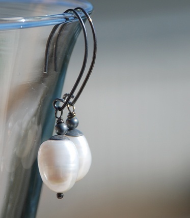 ferskvann, perle, sølv, øredobber, øreringer, ørepynt, hvit, krem, sort, ekte sølv, 925 sølv, sterling, ekte