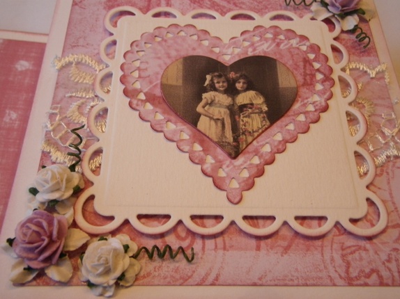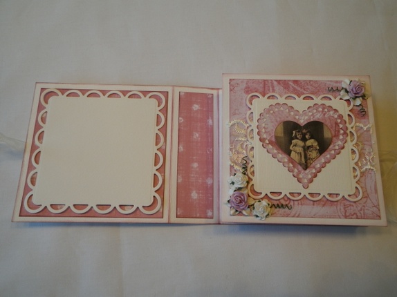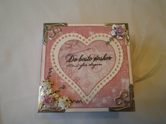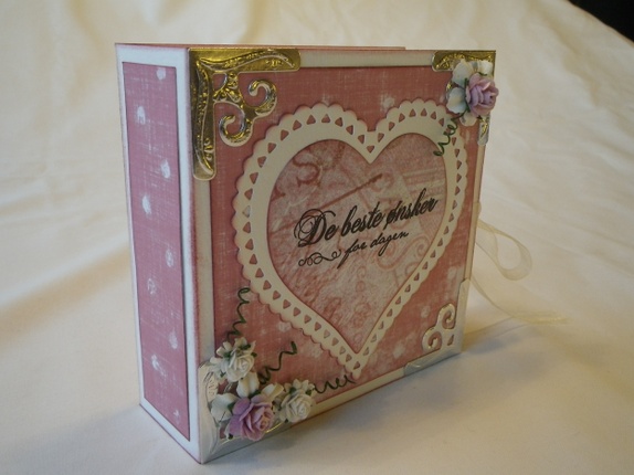 Pyntet med mønsterpapir,metallhjørner roser, blonde, og stempel.
