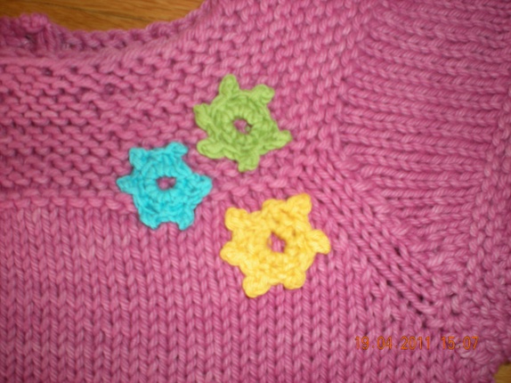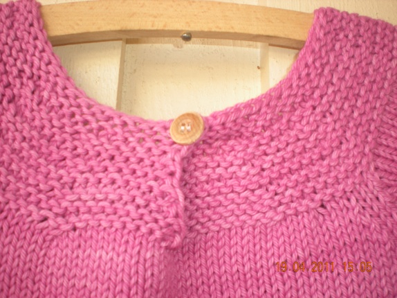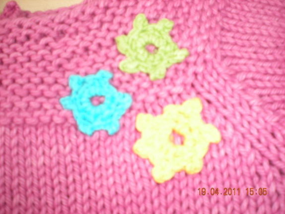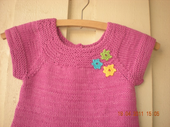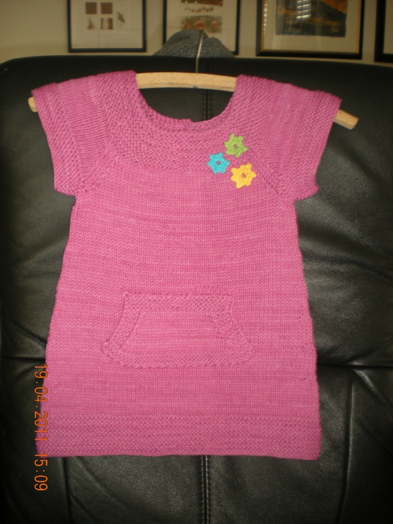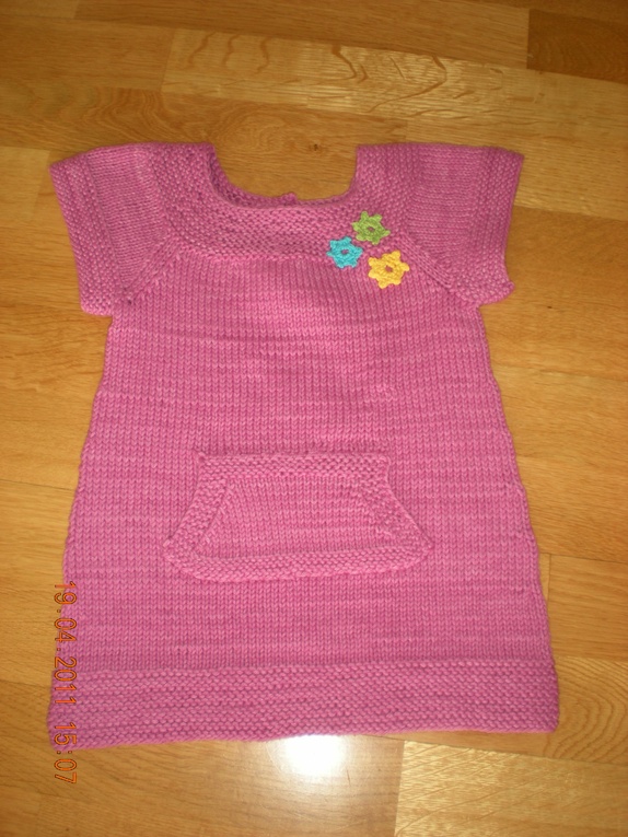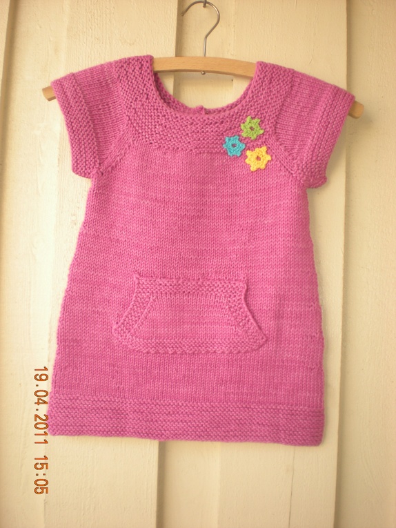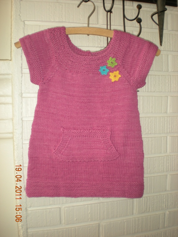En skjønn, strikket tunika til søte små jenter, Garnet er en blanding av bomull og ull, som er behagelig mot huden.