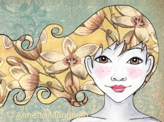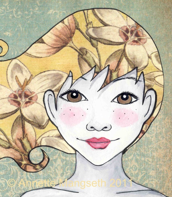 Guro er en original illustrasjon som er laget med en blandet teknikk av akryl maling ,blyant, tusj og collage.