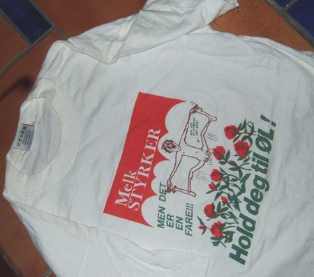 Skjortene har jeg trykket selv, og de er et restlager så når det er tomt, er det tomt.