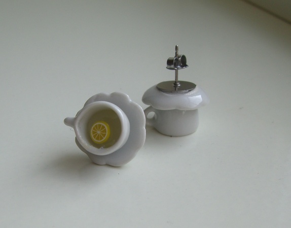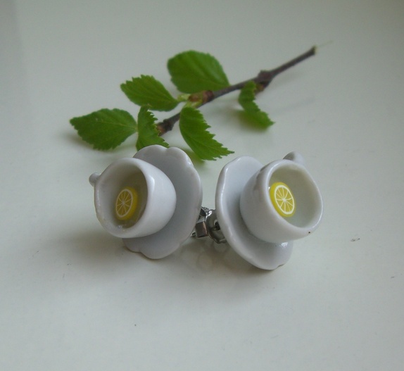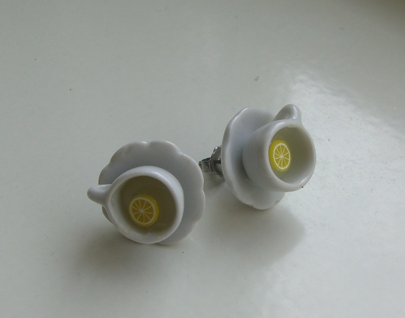 Bon Apetite ! En sunn kopp med sitron te, servert i gammeldagse hvite romantiske porselenskopper fra Le Petit Cafè. På nikkelfrie Earstuds av kirurgisk stål.